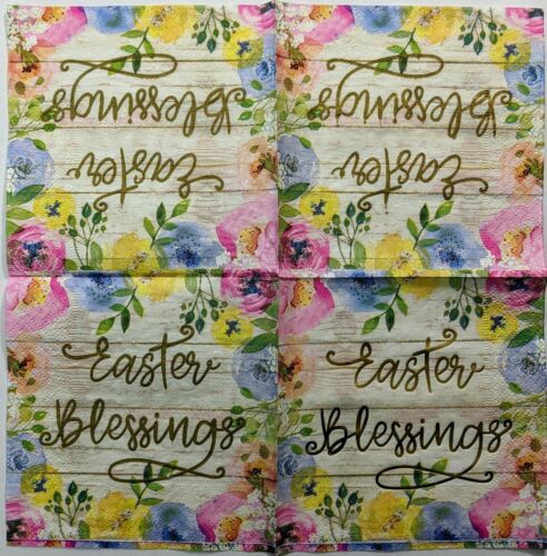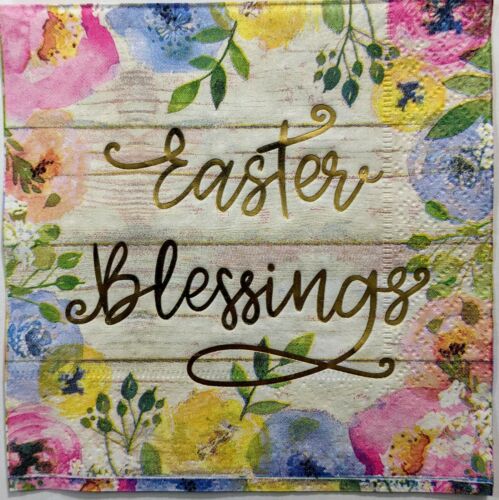 TWO Individual Paper Cocktail Decoupage Napkins - Easter Blessing Flowers 1216