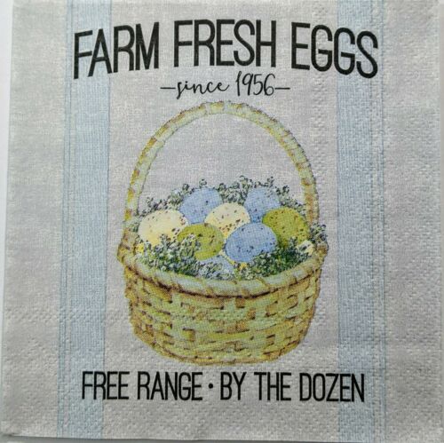 TWO Individual Paper Cocktail Decoupage Napkins- Farm Fresh Eggs Stripes 1285