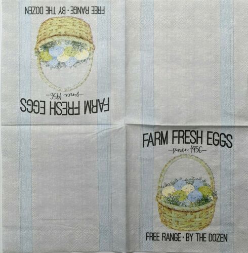 TWO Individual Paper Cocktail/Party 4.92" x 4.92" 3-ply Decoupage Napkin - Farm Fresh Eggs Stripes