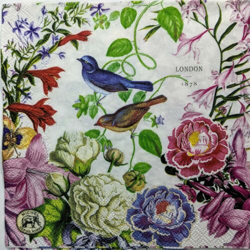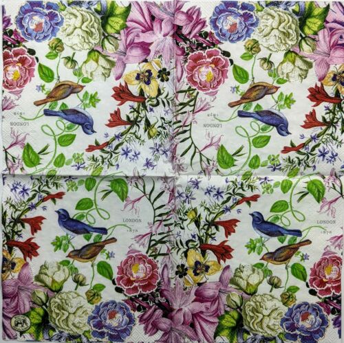 TWO Individual Paper Cocktail Decoupage Napkins- Floral Romance w/ Birds 1154