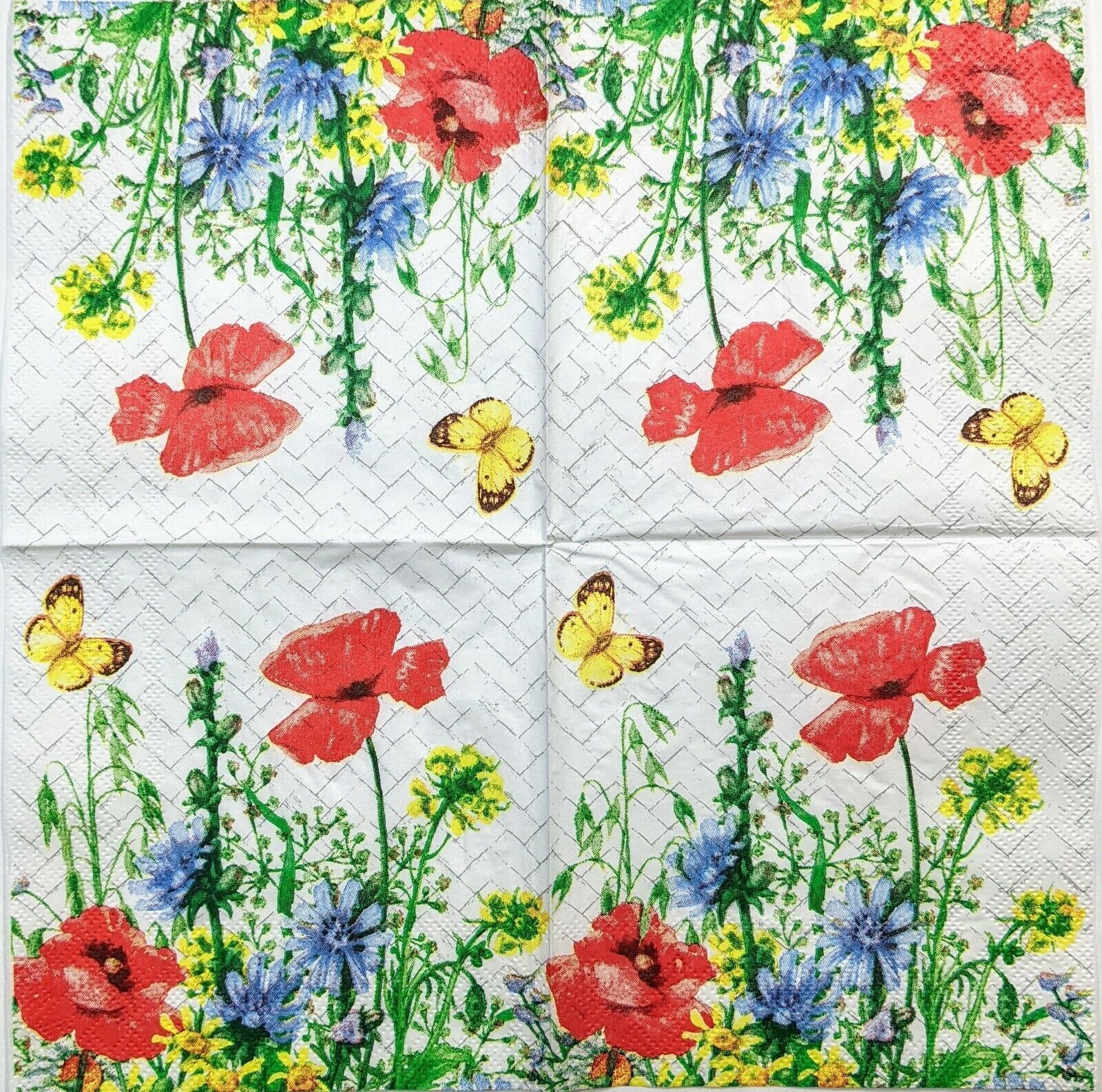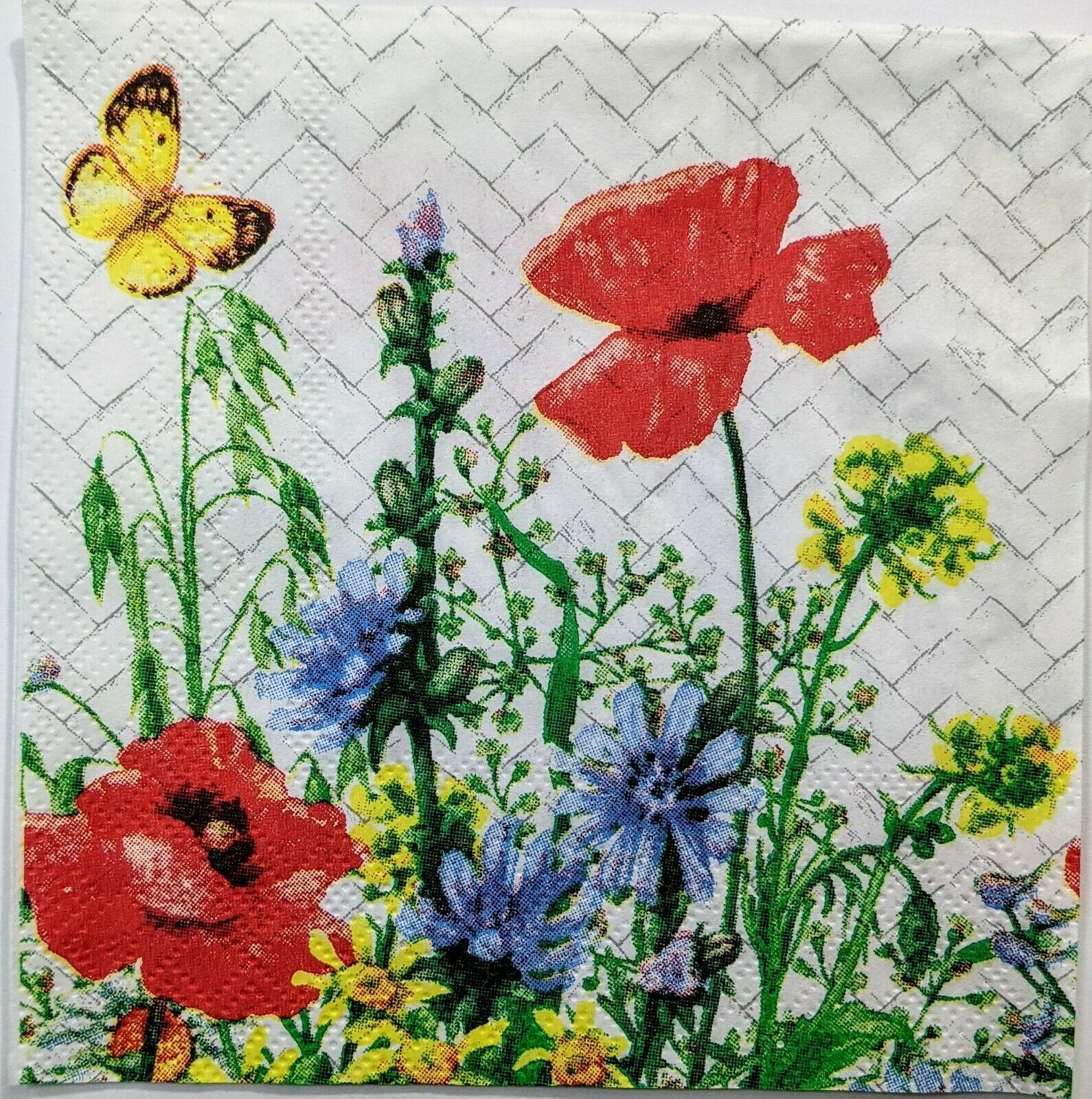 TWO Individual Paper Cocktail/Party 4.92" x 4.92" 3-ply Decoupage Napkin - Garden Floral Basket Medley