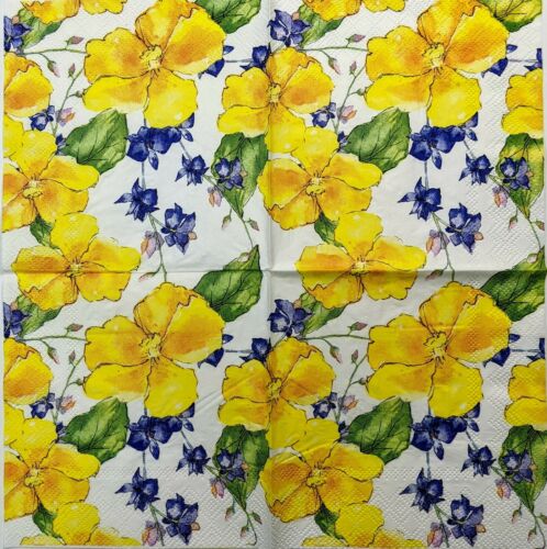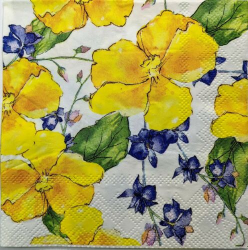 TWO Individual Paper Cocktail Decoupage Napkins- Garden Yellow Floral Twist 1284