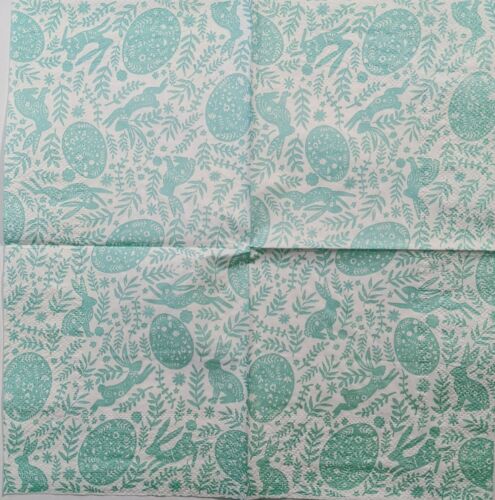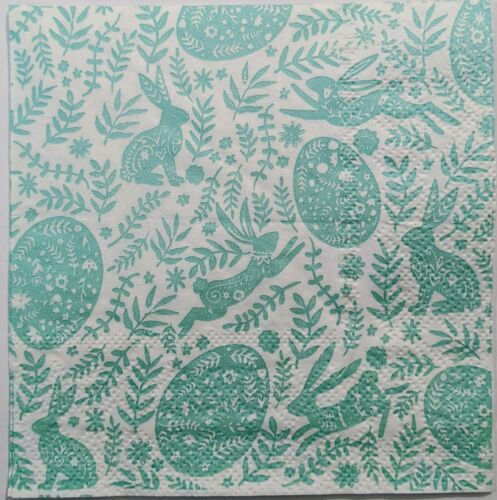 TWO Individual Paper Cocktail Decoupage Napkins -Green Easter Bunnies & Egg 1224