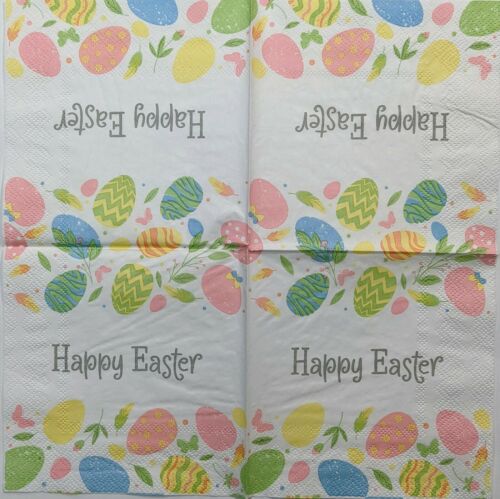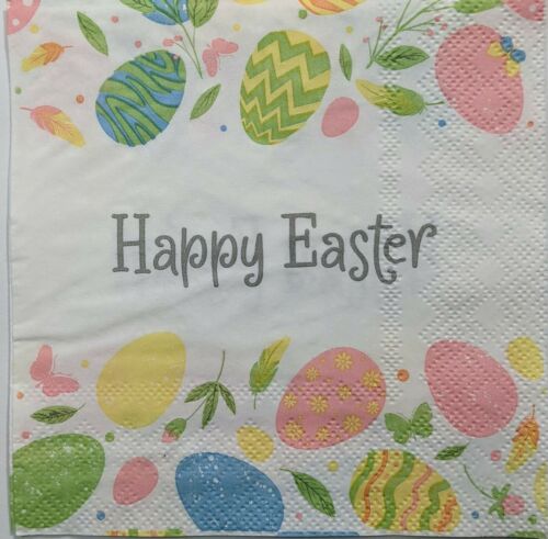 TWO Individual Paper Cocktail Decoupage Napkins- Happy Easter Colored Eggs 1162