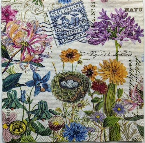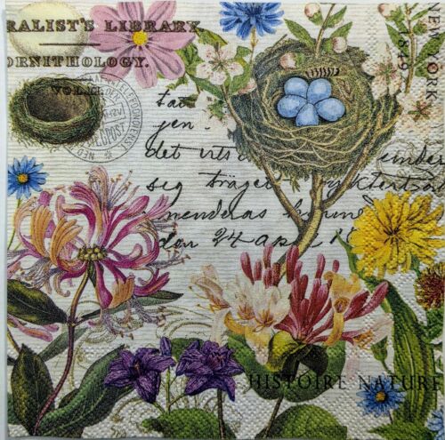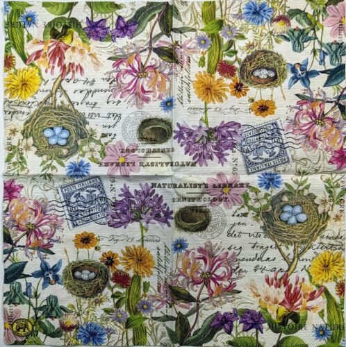 TWO Individual Paper Cocktail/Party 4.92" x 4.92" 3-ply Decoupage Napkin - Honeysuckle w Script Writing.