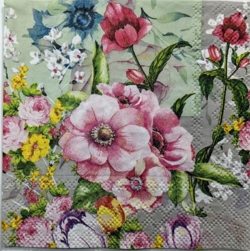 TWO Individual Paper Cocktail Decoupage Napkins-Meghan Colorful Pink Blooms 1150