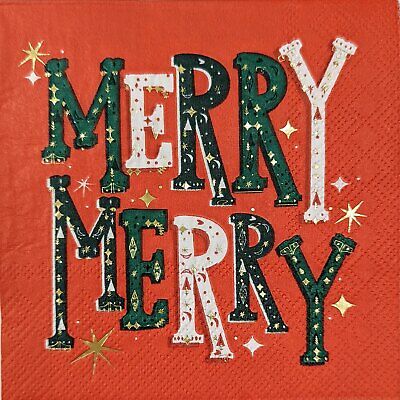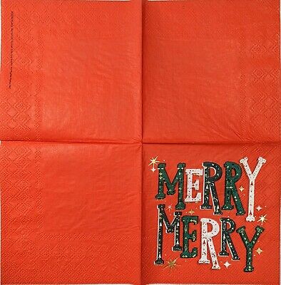 TWO Individual Paper Cocktail Decoupage Napkins - Merry Merry Red