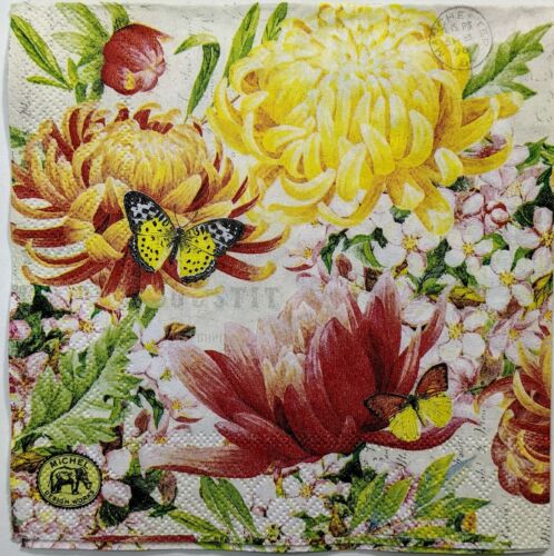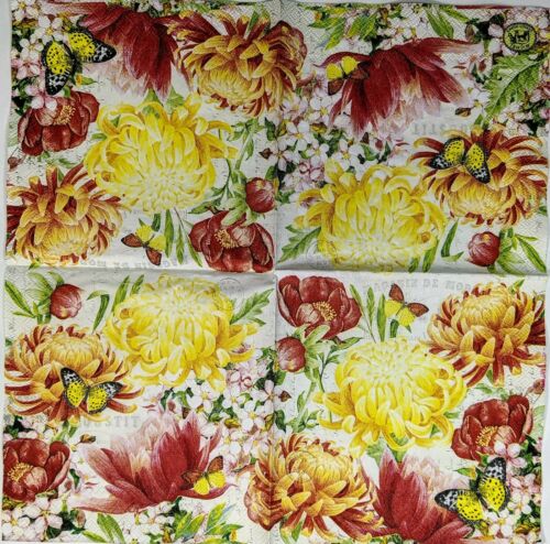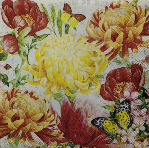 TWO Individual Paper Cocktail Decoupage Napkins- Morning Blossoms Bold 1141