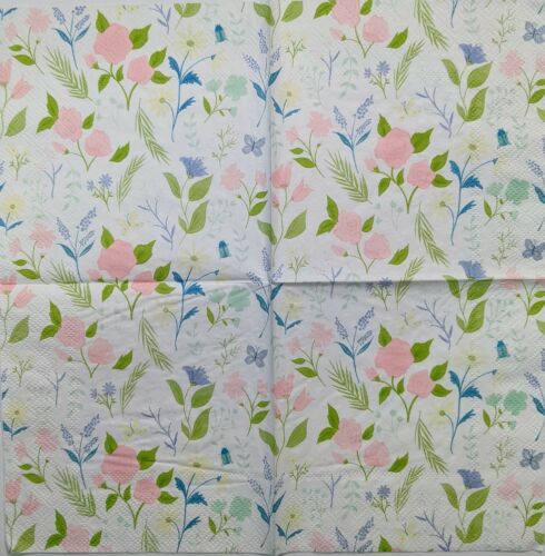 TWO Individual Paper Cocktail Decoupage Napkins- Pastel Flowers 1157