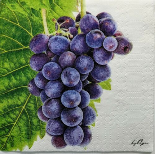 TWO Individual Paper Cocktail Decoupage Napkins- Purple Grape Bunch 1148
