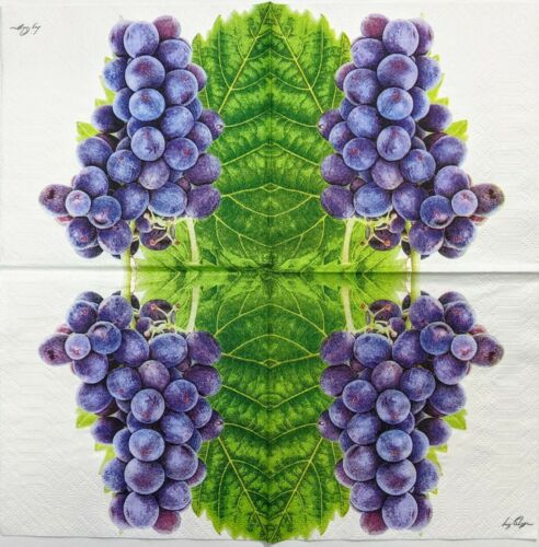 TWO Individual Paper Cocktail/Party 4.92" x 4.92" 3-ply Decoupage Napkin - Purple Grape Bunch