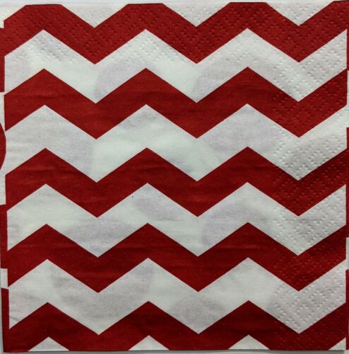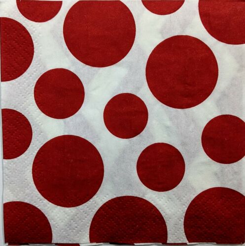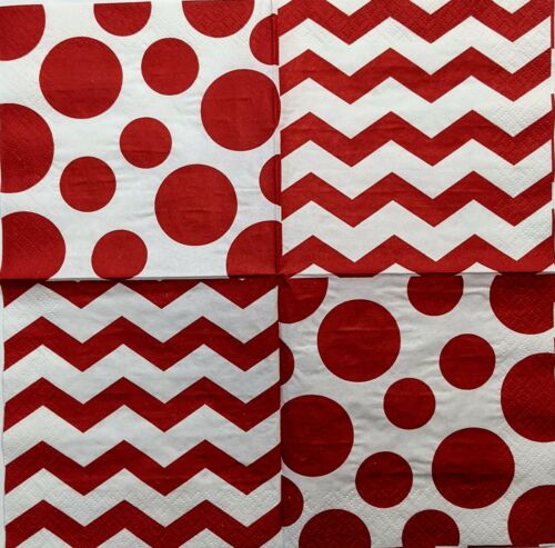 TWO Individual Paper Cocktail/Party 4.92" x 4.92" 2-ply Decoupage Napkin - Red Polka Dot Chevron