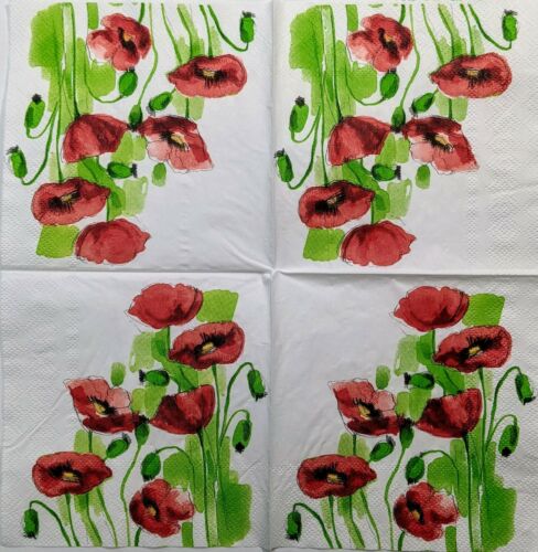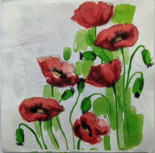 TWO Individual Paper Cocktail Decoupage Napkins- Red Poppies 1170