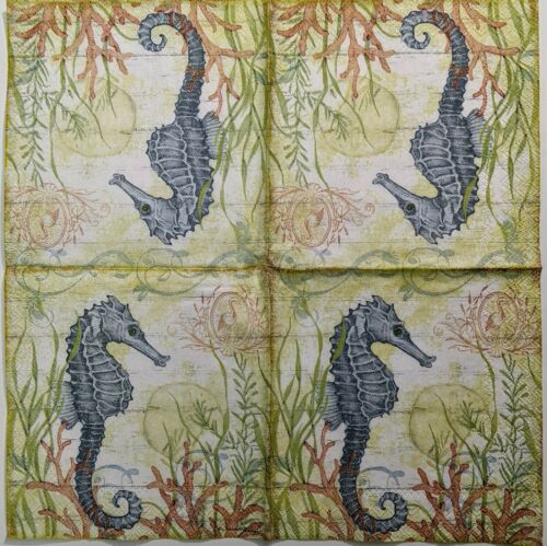 TWO Individual Paper Cocktail/Party 4.92" x 4.92" 3-ply Decoupage Napkin - Sea Horse And Coral