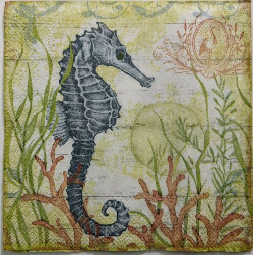 TWO Individual Paper Cocktail Decoupage Napkins - Sea Horse And Coral 1256
