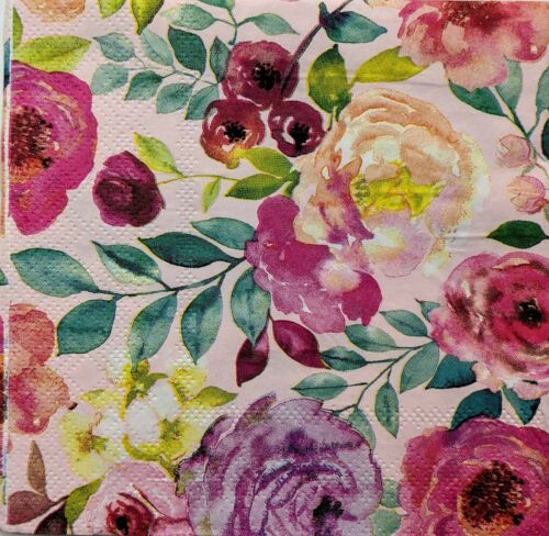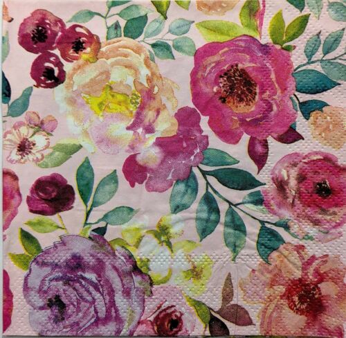 TWO Individual Paper Cocktail Decoupage Napkins- Spring Floral Color Pallet 1245