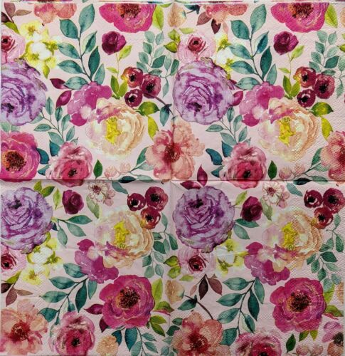 TWO Individual Paper Cocktail/Party 4.92" x 4.92" 3-ply Decoupage Napkin - Spring Floral Color Pallet