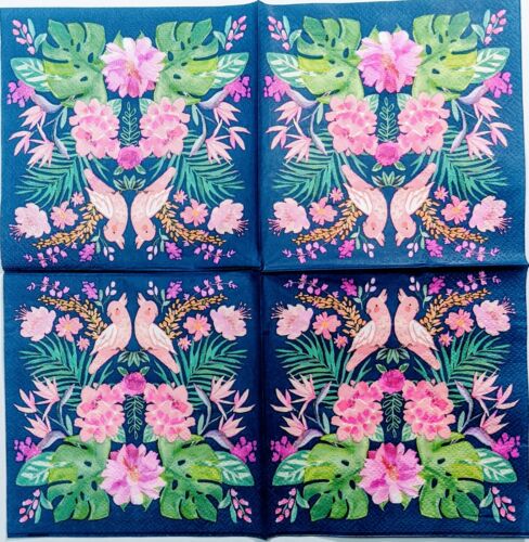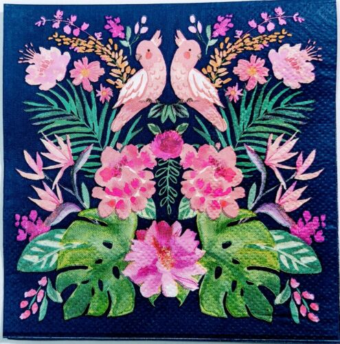 TWO Individual Paper Cocktail Decoupage Napkins- Tropical Pink Birds 1321