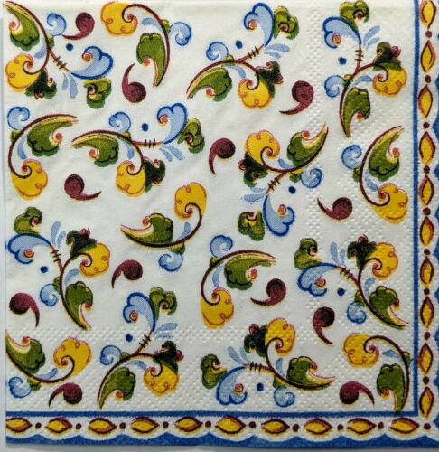 TWO Individual Paper Cocktail Decoupage Napkins - Tuscan Swirl 1280