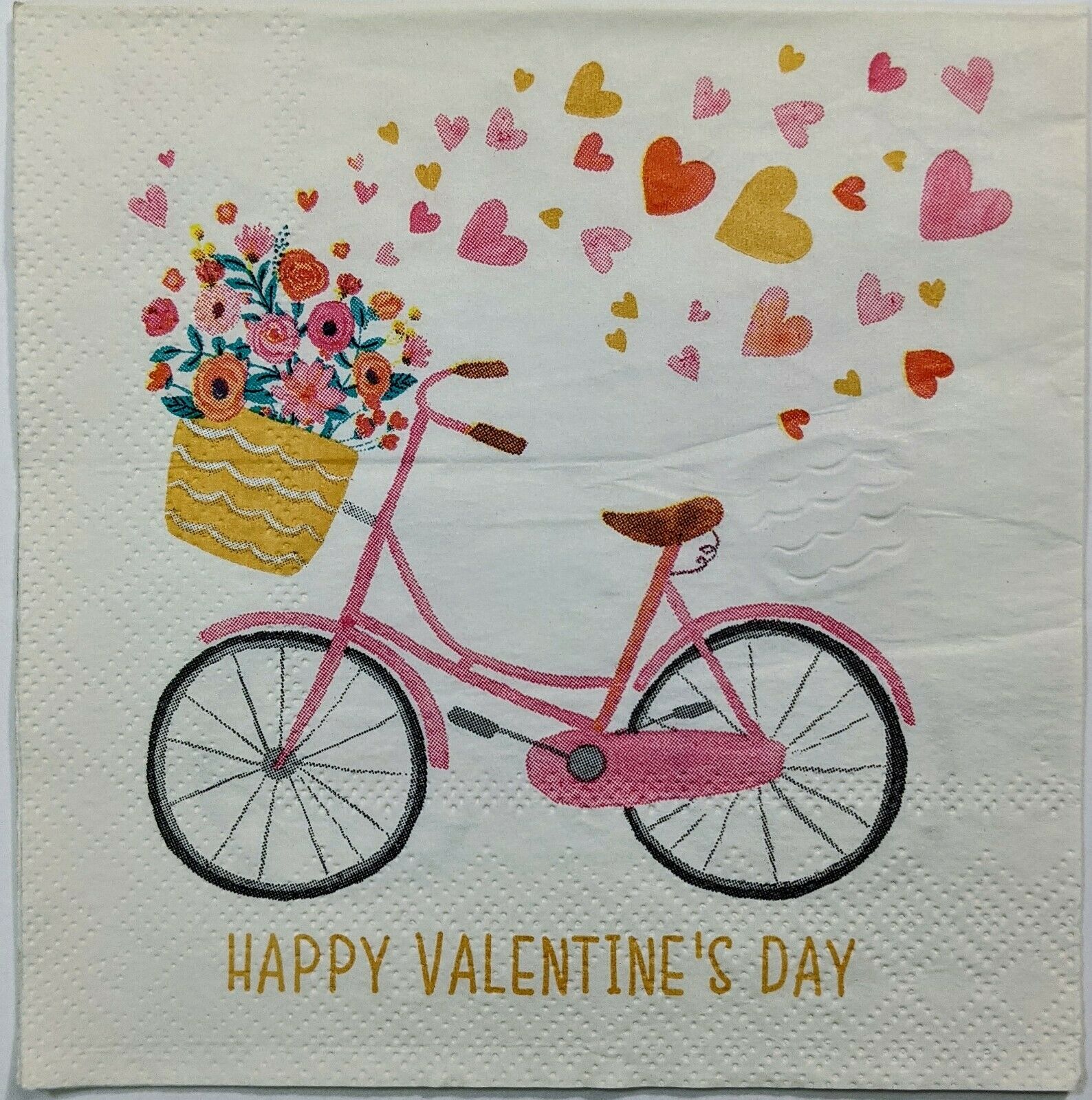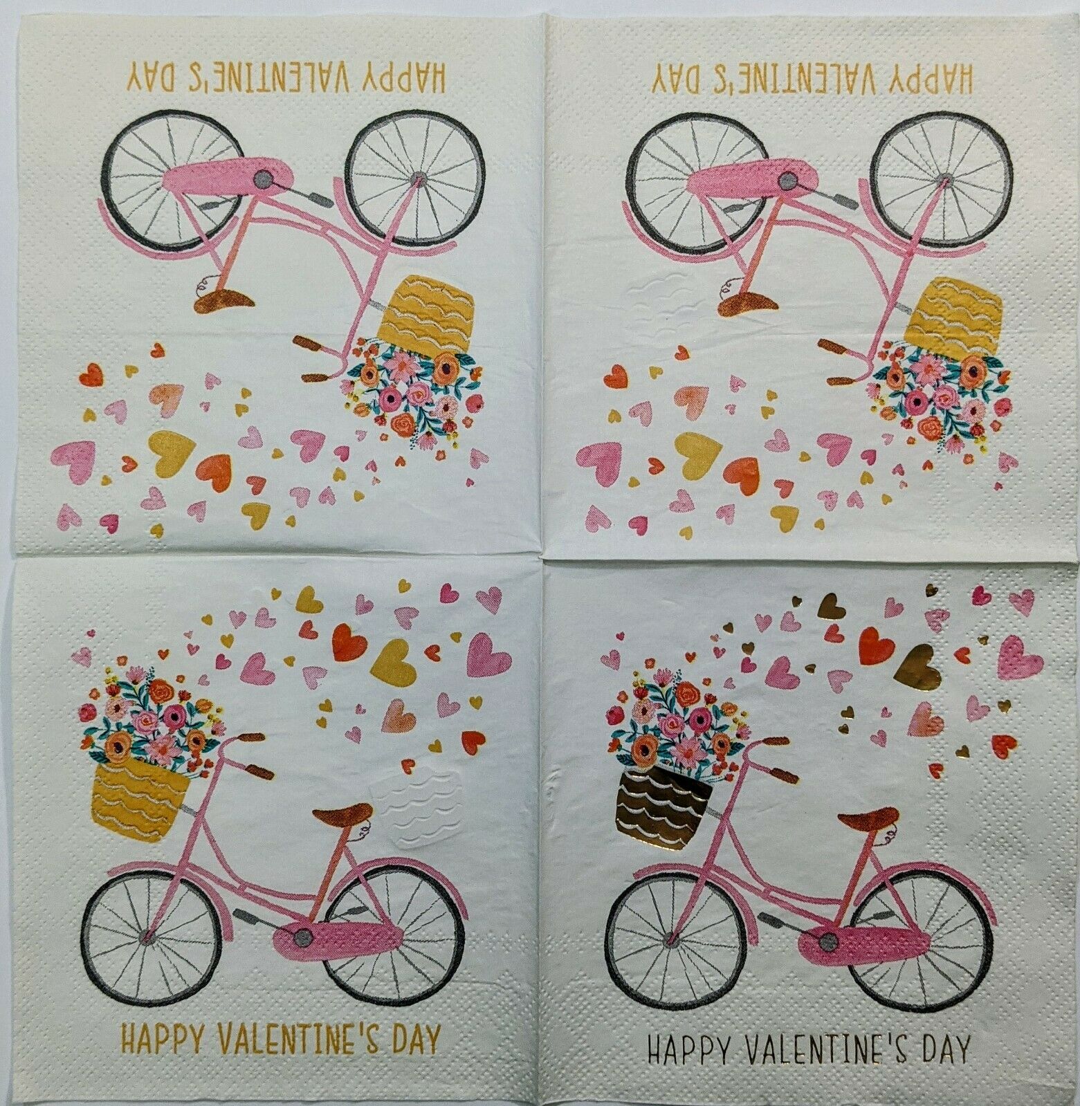 TWO Individual Paper Cocktail/Party 4.75" x 4.75" 2-ply Decoupage Napkin - Valentine Pink Bike Love