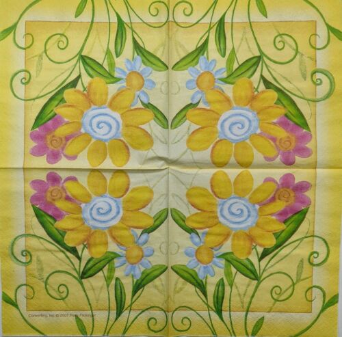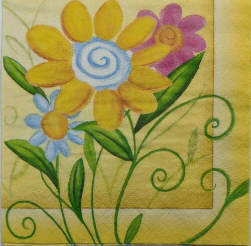 TWO Individual Paper Cocktail/Party 4.92" x 4.92" 2-ply Decoupage Napkin - Yellow Spring Floral Medley