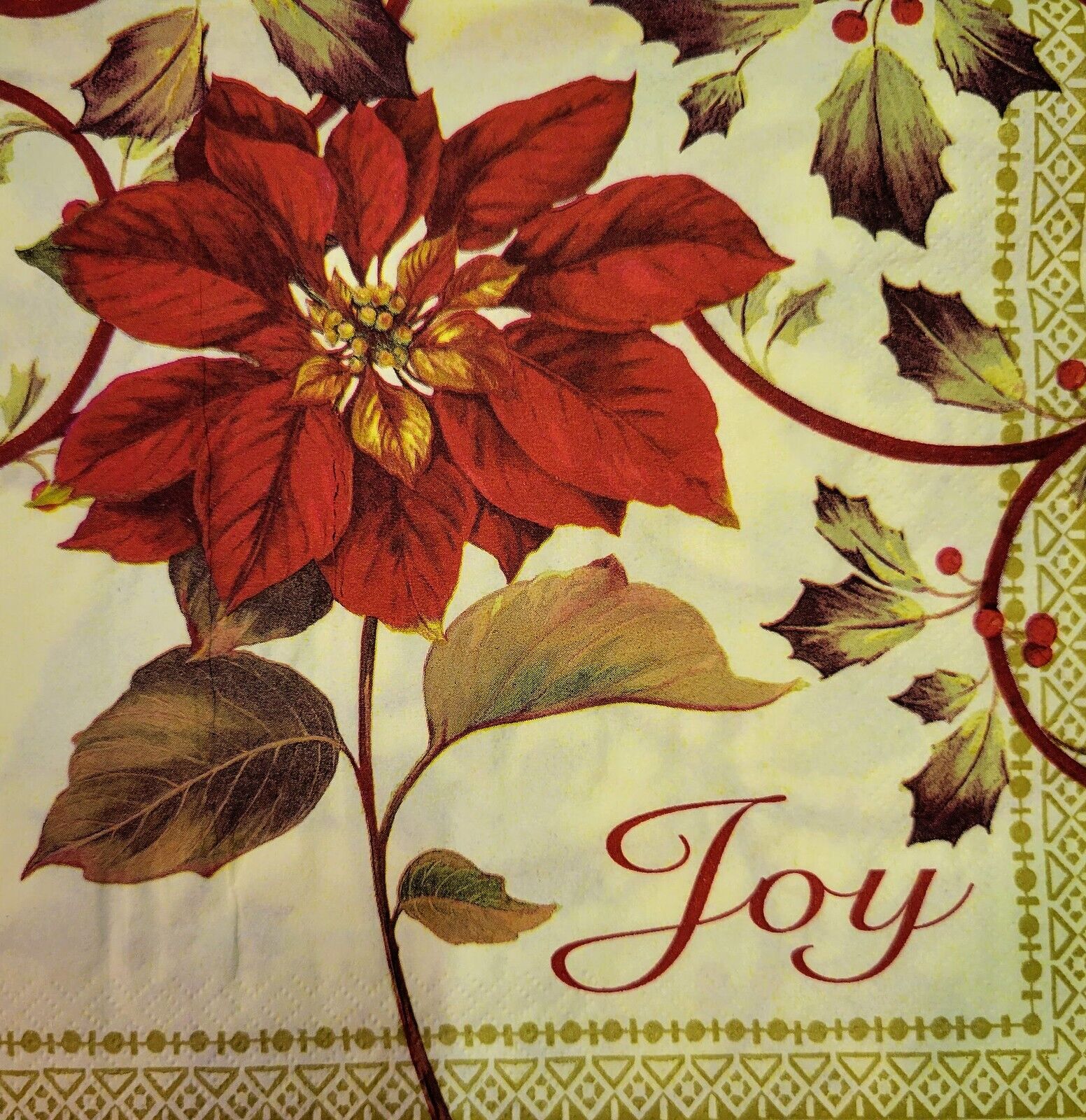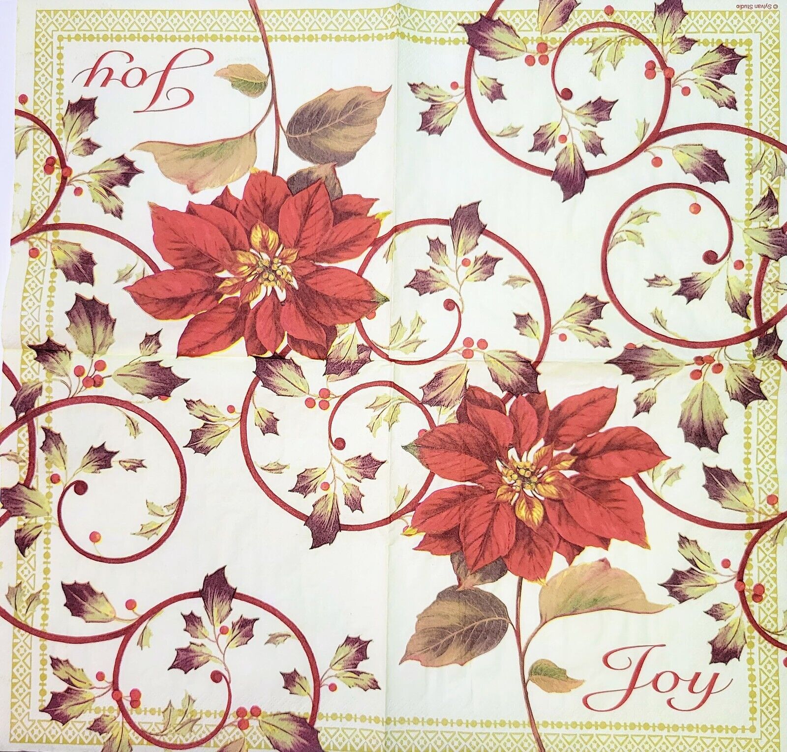 TWO Individual Paper Dinner 15.75" x 15.75", 2-ply Decoupage Napkin - Christmas Poinsettia Joy