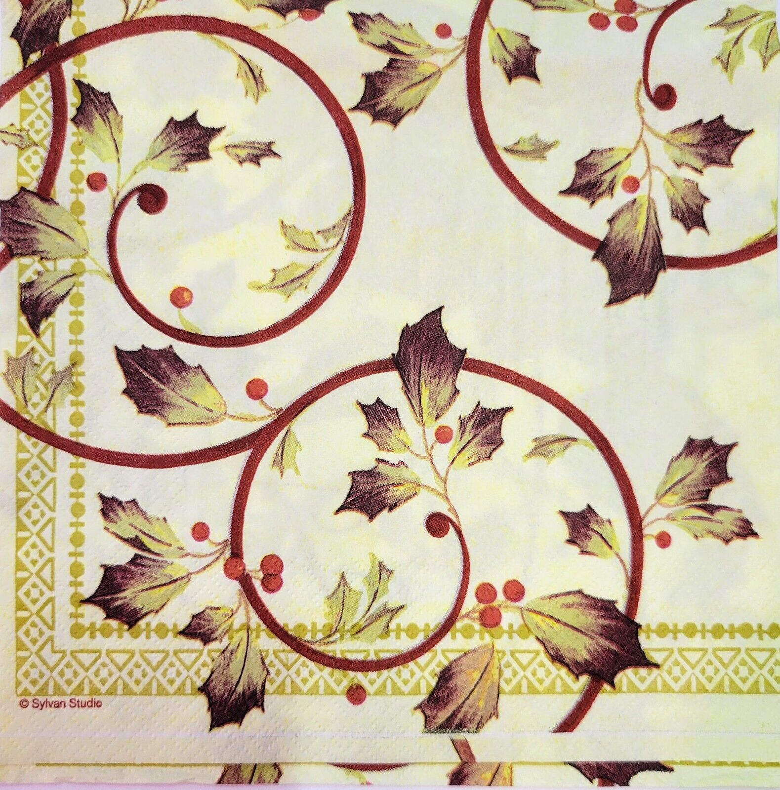 TWO Individual Paper Dinner Decoupage Napkins - 2163 Christmas Poinsettia Joy