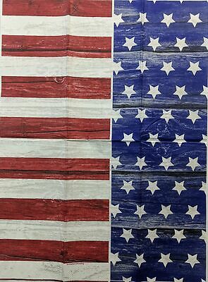 TWO Individual Paper Guest Decoupage Napkins - 1435 Wood Patterned American Flag