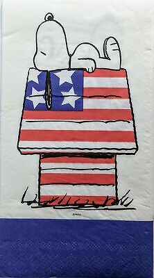 TWO Individual Paper Guest Decoupage Napkins - 1440 Patriotic Snoopy Doghouse