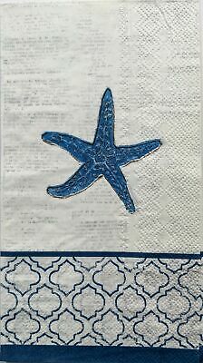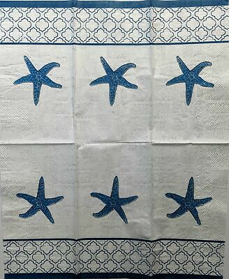 TWO Individual Paper Guest Decoupage Napkins - 1442 Blue Starfish w/ Pattern