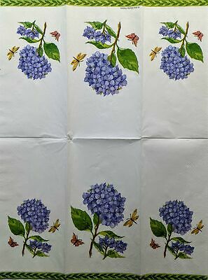 TWO Individual Paper Guest Decoupage Napkins - 1467 Hydrangea w/ Butterflies