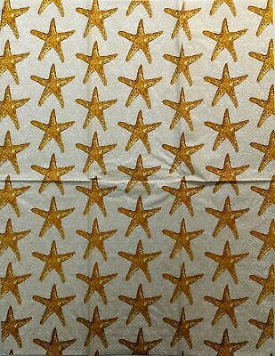 TWO Individual Paper Guest Decoupage Napkins - 1472 Gold Starfish