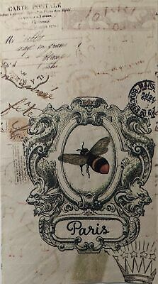 TWO Individual Paper Guest Decoupage Napkins- 1520 Scripted Paris Bee w/ Postage