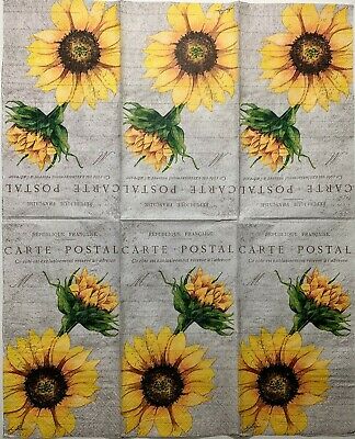 TWO Individual Paper Guest Decoupage Napkins - 1552 Sunflower Carte Postal