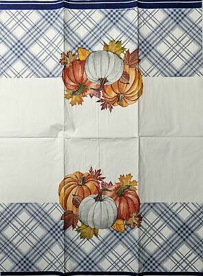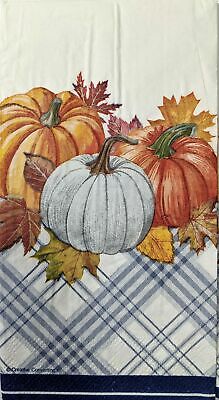 TWO Individual Paper Guest Decoupage Napkins - 1628 Pumpkins and Blue Plaid
