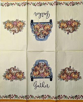TWO Individual Paper Guest Decoupage Napkins - 1635 Gather Pumpkin Truck