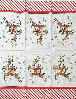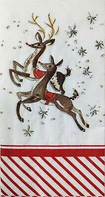 TWO Individual Paper Guest Decoupage Napkins - 1734 Peppermint Striped Reindeer