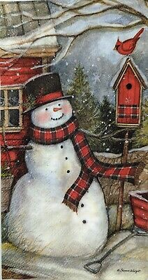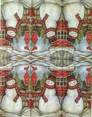 TWO Individual Paper Guest Decoupage Napkins - 1736 Snowman Barn