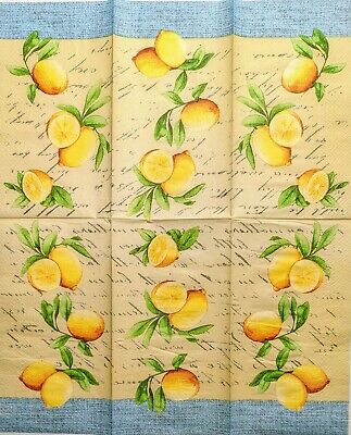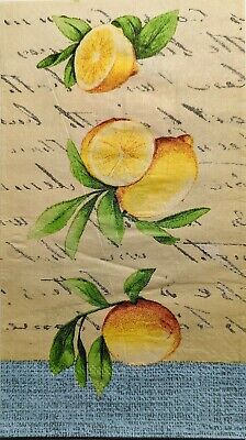 TWO Individual Paper Guest Decoupage Napkins - 1797 Lemon Pucker Script