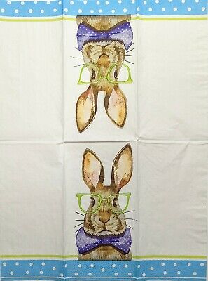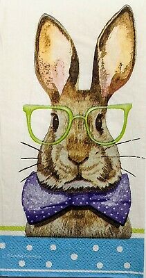 TWO Individual Paper Guest Decoupage Napkins - 1832 Bowtie Bunny with Glasses