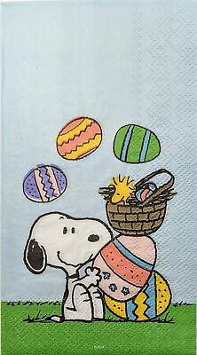 TWO Individual Paper Guest Decoupage Napkins - 1873 Snoopy & Woodstock Easter