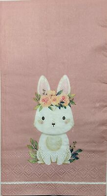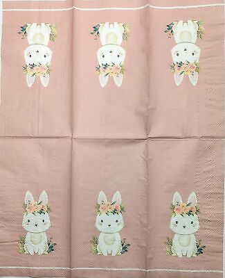 TWO Individual Paper Guest Decoupage Napkins - 1879 Floral Bunny on Pink