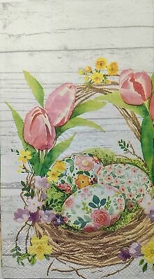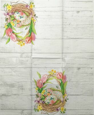 TWO Individual Paper Guest Decoupage Napkins - 1881 Pastel Dressed Easter Basket