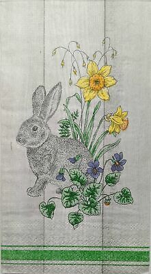TWO Individual Paper Guest Decoupage Napkins - 1882 Gray Bunny in Daffodils