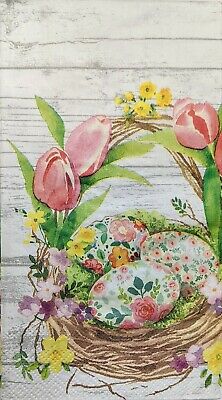 TWO Individual Paper Guest Decoupage Napkins - 1926 Easter Eggs in a Basket