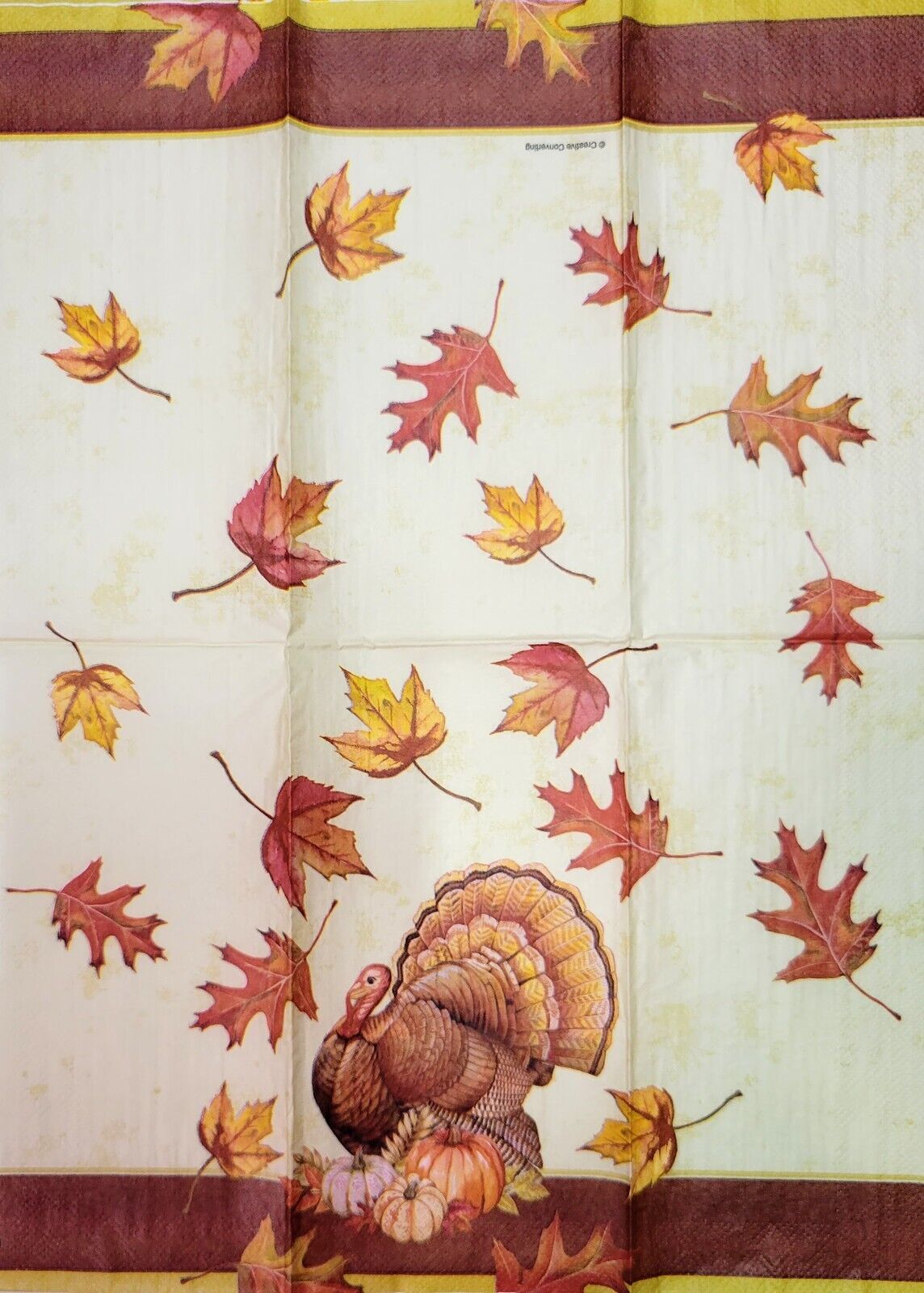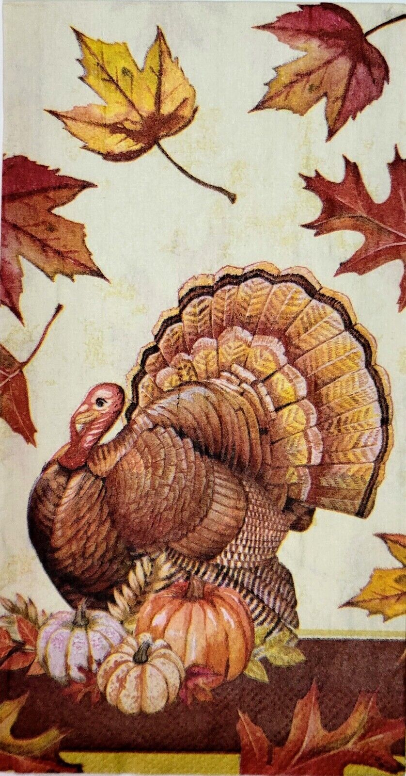 TWO Individual Paper Guest Decoupage Napkins - 2101 Thanksgiving Turkey & Leaves