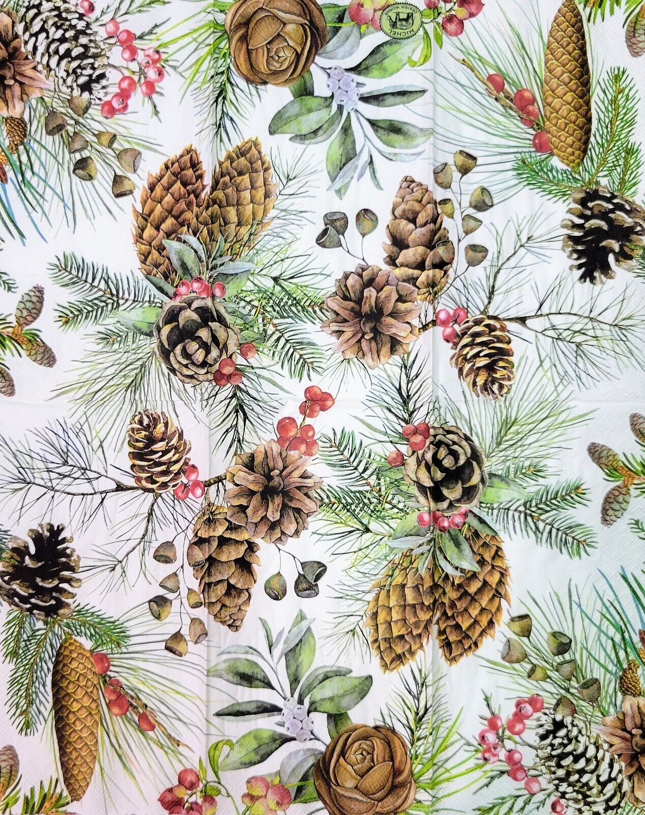 TWO Individual Paper Guest Decoupage Napkins - 2115 Spruce Pinecones