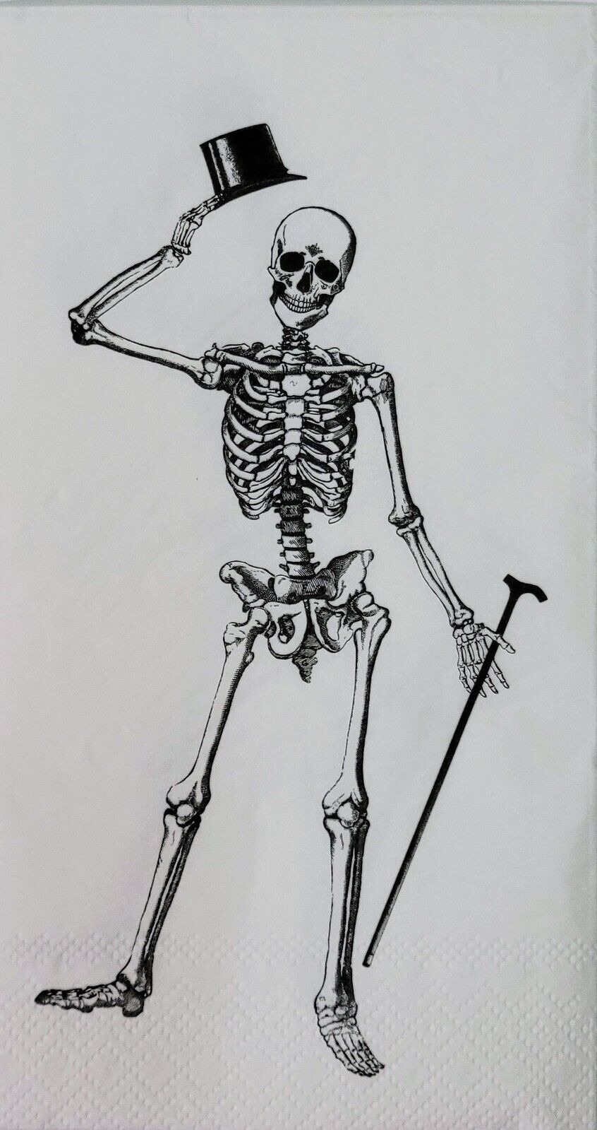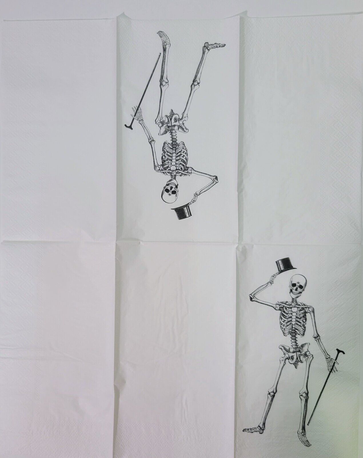 TWO Individual Paper Guest Decoupage Napkins - 2119 Top Hat Skeleton