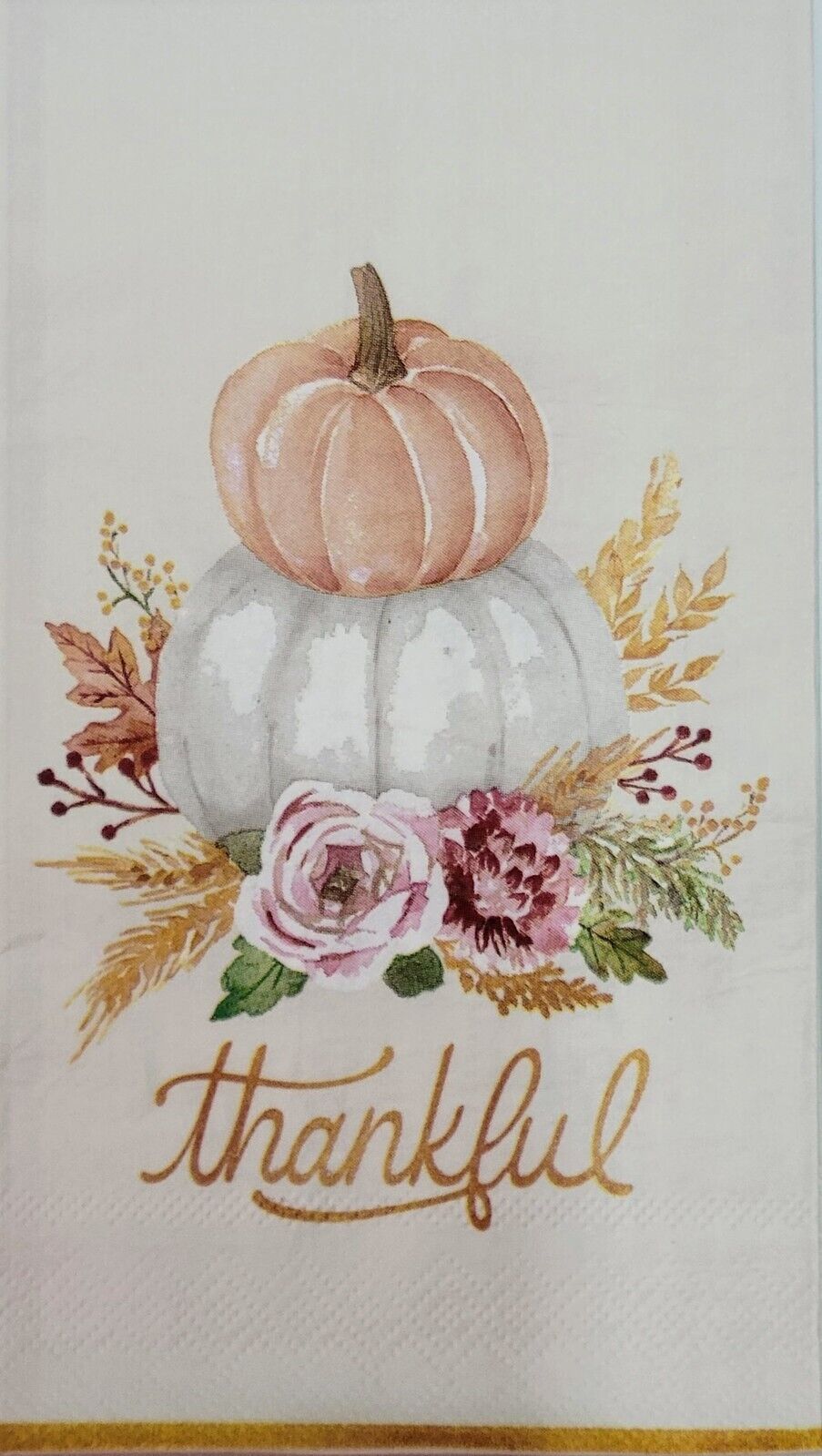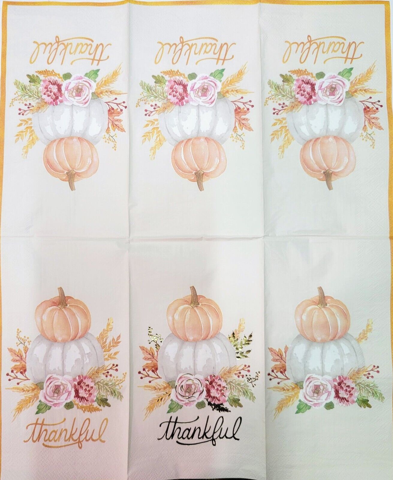 TWO Individual Paper Guest Decoupage Napkins - 2124 Foil Thankful Arrangement
