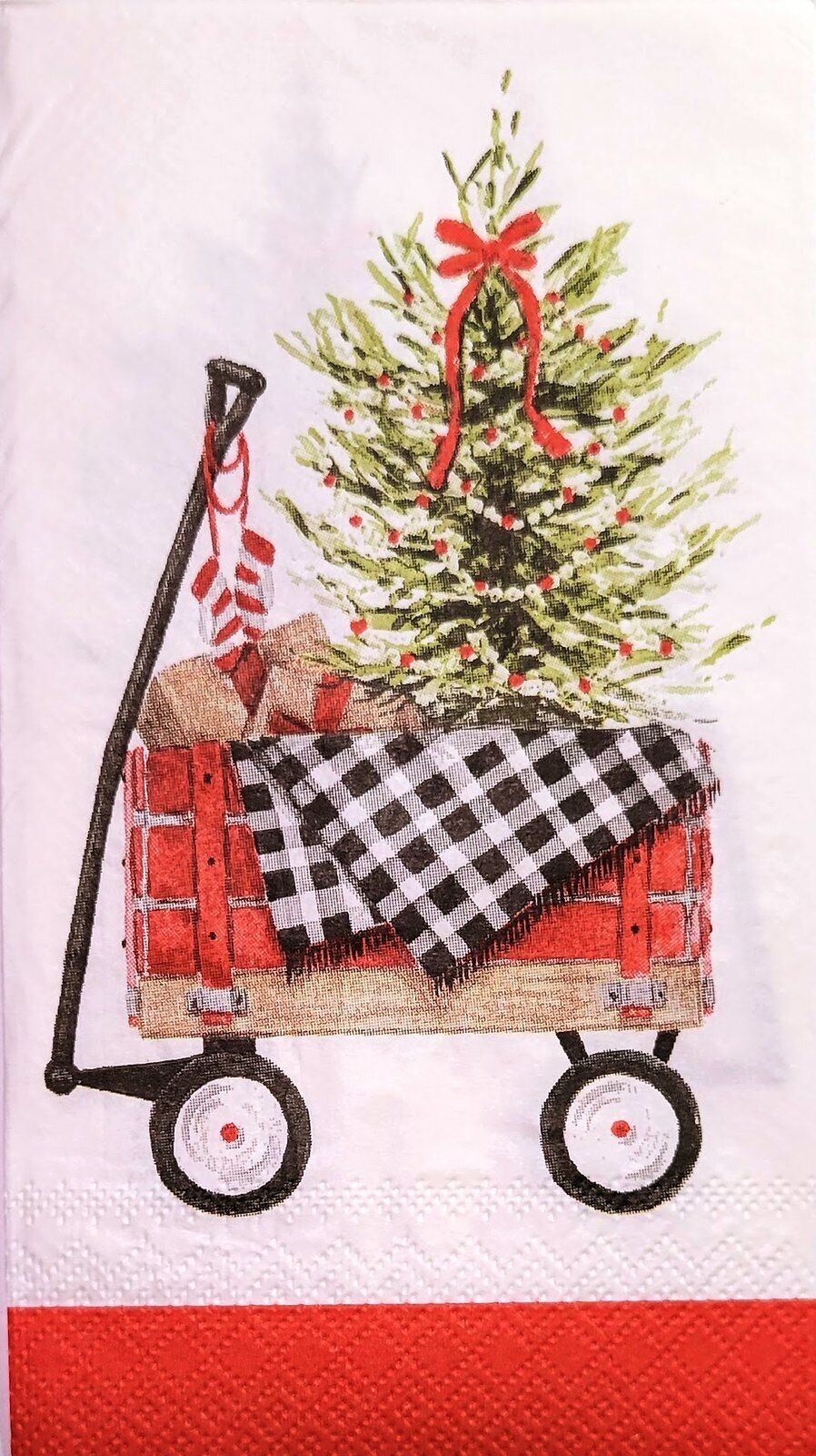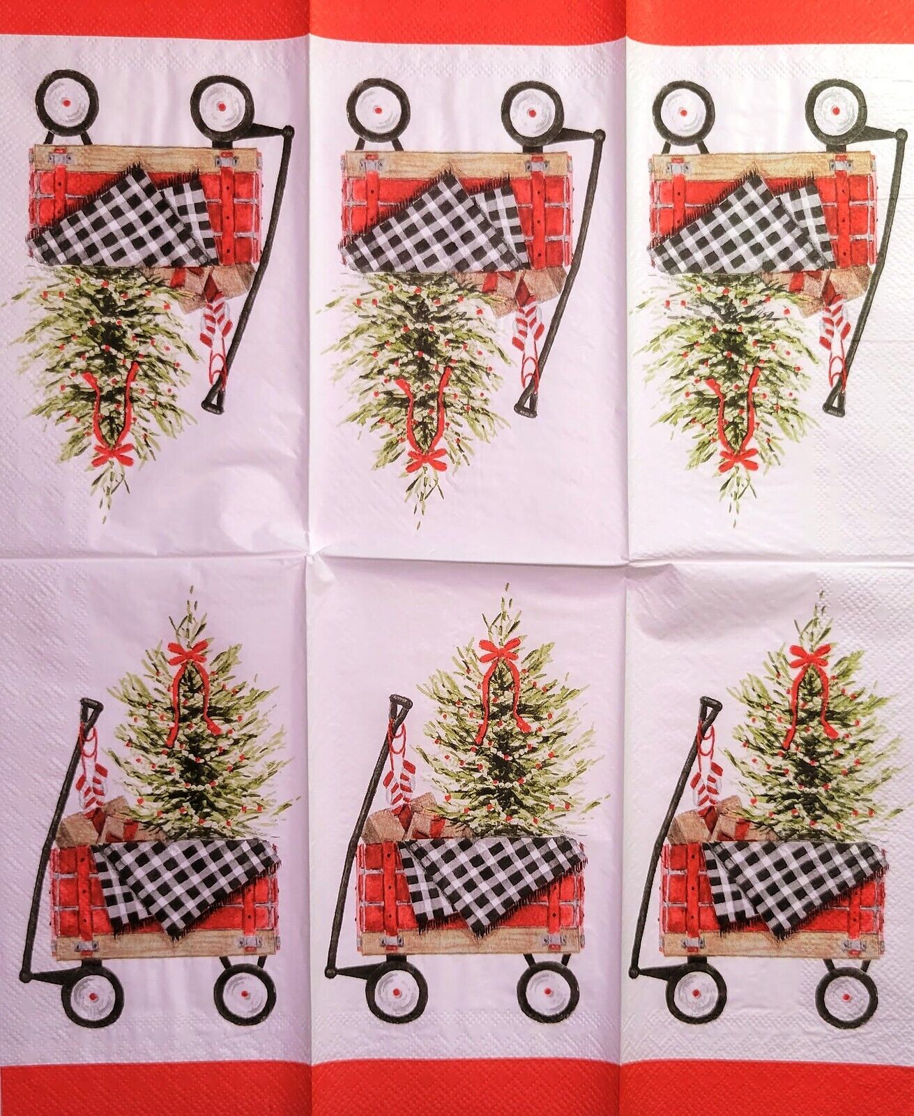 TWO Individual Paper Guest Decoupage Napkins - 2237 Wagon Christmas Tree